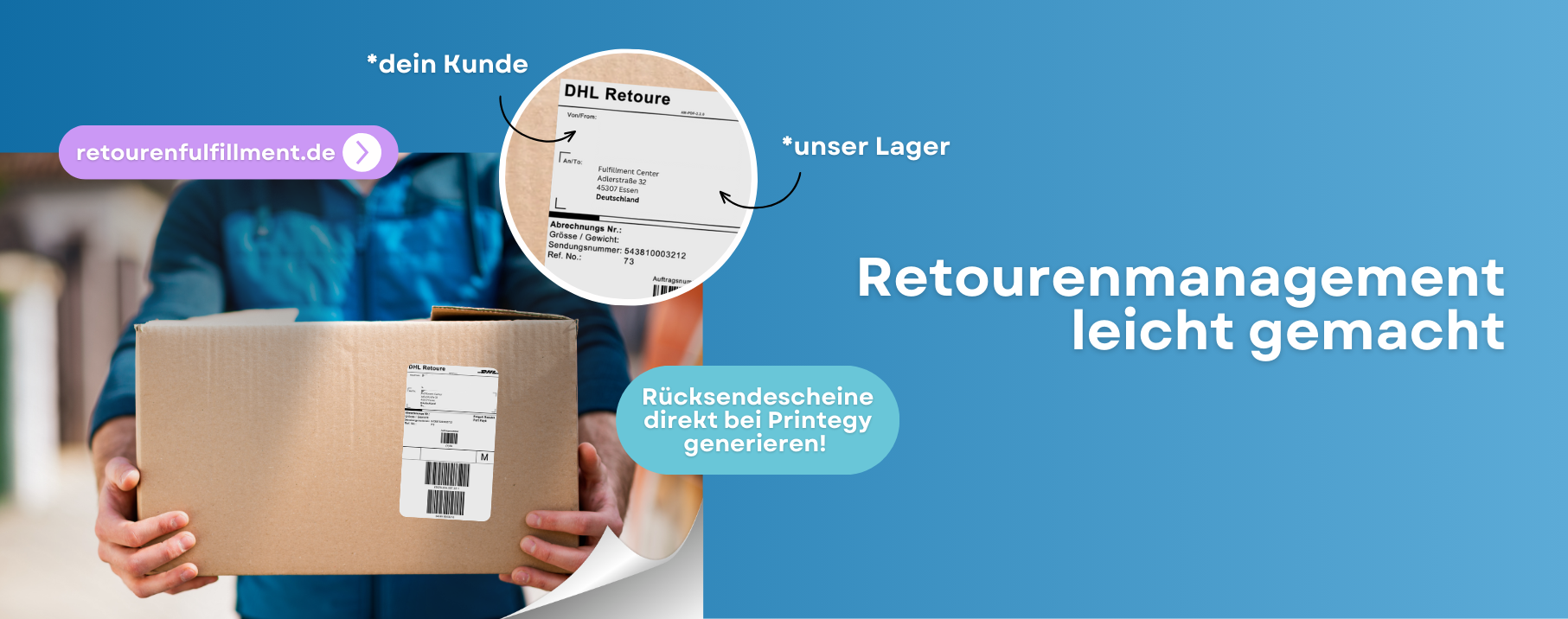 das Retourenmanagement ist jetzt einfacher denn je! Eure Kunden können nun ihre Rücksendescheine direkt über Printegy generieren.